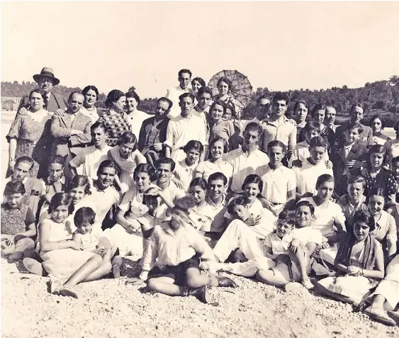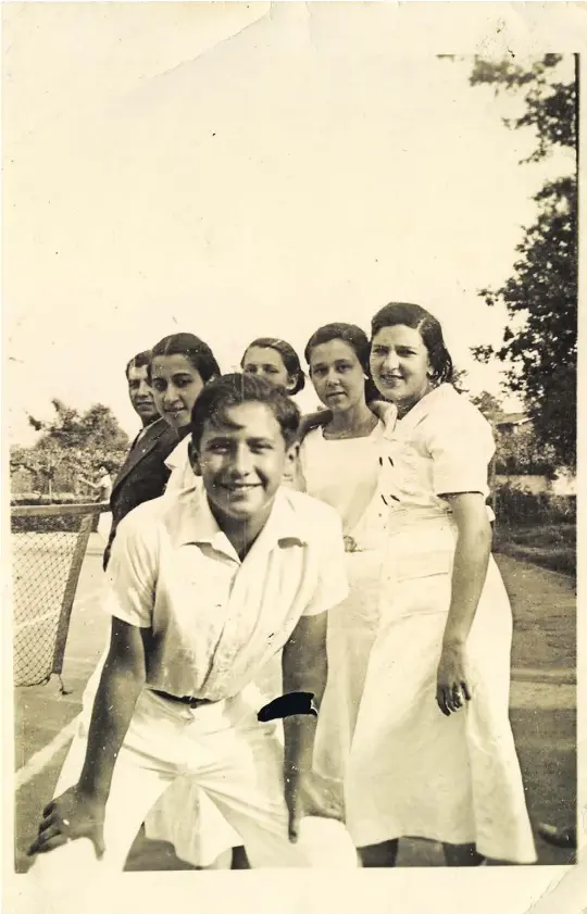 Em primeiro plano, Francisco Salgado Zenha, nos anos 1930, em Soutelo, freguesia de Vila Verde a menos de dez quilómetros de Braga. À direita na imagem, Maria Teresa Machado (mãe do ex-procuradorgeral da República José e do arquitecto Eduardo Souto de Moura). O grupo de veraneantes posa naquilo que parece um campo de ténis, desporto que foi uma presença regular na vida e na família de Salgado Zenha
