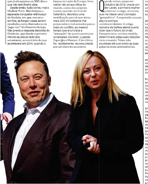 No seu último discurso sobre o estado da União, em Setembro deste ano, ela e todas as comissárias apresentaram-se em Estrasburgo vestidas com as cores da bandeira ucraniana. A sua figura elegante feminina esconde uma vontade de ferro. Com a presidente do Parlamento Europeu e as primeiras-ministras da Estónia e da Finlândia simboliza a resistência à guerra imperialista de Putin e o apoio ao povo ucraniano. “Nestes anos de crise vimos a melhor versão da União Europeia.” Só falta acrescentar às suas palavras que o seu contributo foi decisivo. Teresa de Sousa